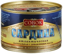 | Название | Сардина Совок атлантическая натуральная с добавлением масла |