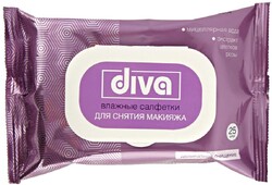 | Название | Салфетки влажные для снятия макияжа, с пластиковым клапаном, 25шт., Diva №25 , Флоу-пак |