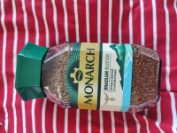 Прозрачная стеклянная банка со стандартной зеленой крышкой, с мембраной. Гранулы цельные, размер не совсем одинаковый, но это на практике оказалось не важно, растворяются все гранулы хорошо. В сухом виде пахнет не хуже, чем молотые зерна. По вкусу мягкий, поэтому на чашку вкуснее две ложки кофе. Молоко к растворимому добавляю, оно придает густоты и жирности. Достаточно приятный вкус, можно без подсластителя выпить. Просто вкусный кофе с удобным приготовлением.