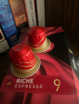 Riche Espresso с многогранныи вкусом и ощущается что арабика 100%, а капсулы алюминиевы не забиваются в кофемашине и подходят к системе Nespresso.