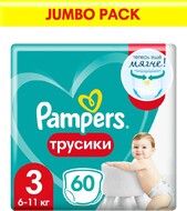 Культовые трусики Pampers стали ещё лучше! Ведь теперь у них есть новый, ещё более мягкий поясок SoftSkin, который нежно прилегает к животику и защищает нежную кожу малыша от натираний. Мягкие бортики вокруг ножек помогают избежать протеканий, технология мгновенного впитывания надёжно защищает кожу малыша от контакта с влагой до 12 часов, а новые милые дизайны превратят смену трусиков в увлекательную игру.Трусики Pampers легко надевать и снимать, так что активные малыши смогут продолжать изучать мир вокруг, не отвлекаясь на смену трусиков! А когда трусики понадобится поменять, просто разорвите их по боковому шву!Все трусики Pampers одобрены дерматологами.Комфорт кожи и защита со всех сторонНовый мягкий поясок с технологией SoftSkin - теперь ещё мягче!Мягкие бортики вокруг ножек помогают избежать протеканий и натиранийТехнология мгновенного впитывания надёжно удерживает влагу внутри.