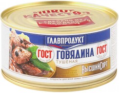 | Название | Говядина Главпродукт тушеная ГОСТ высший сорт 325г |