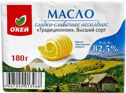 | Название | БЗМЖ Масло сладко-сливочное ОКЕЙ традиционное 82,5%180г |