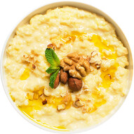 Традиционная сытная каша, приготовленная из пшенной крупы на натуральном коровьем молоке с добавлением сахара, щепотки соли и сливочного масла. Отличается нежным вкусом и густой консистенцией.
