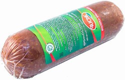 Варено-копченый сервелат «Восточный» компании «Эколь Халяль» — это классическая колбаса, идеально подходящая для мясных нарезок и бутербродов. Она изготовлена на основе натуральных ингредиентов — говядины и куриного филе, для аромата добавлены пряности и специи. Халяльная колбаса — продукт с интересным неоднородным срезом. Сервелат украсит как праздничный стол, так и будничные завтраки и ланчи. Состав: Говядина, филе курицы, жир говяжий, молочный белок, крахмал, соль, стабилизаторы Е 450, Е251, Е252, пряности, фиксатор окраски Е250, краситель Е124.Пищевая ценность в 100 г продукта: белок 12 г, жир 31 г, углеводы 2 г.Энергетическая ценность: 332 ккал.Температура хранения от 0 до +6'С.Срок годности 60 суток.ТУ 9213-001-53917856-12ООО "Оптимум".