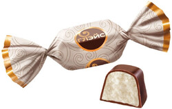 Конфета глазированная со сливочным вкусом. Конфета с помадной начинкой со сливочным вкусом и тонким ароматом кокоса.