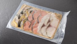 Рыбная нарезка из дальневосточной горбуши и атлантической скумбрии и саворина. Имеет самый простой состав – рыба и соль.