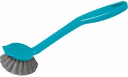 Классическая щетка для мытья посуды. Имеет щетину средней жесткости и пластиковый скребок на конце, с помощью которого легко, но деликатно удаляются самые стойкие загрязнения. Размеры щетки: 22×5х5,5см.