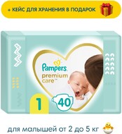 Подгузники Pampers Premium Care 1 2-5кг 20+20шт + коробочка для храненияТакие мягкие, что малыш их даже не заметит!Обновленные Pampers Premium Care теперь с технологией ProSkin - двойным внутренним слоем, который моментально впитывает, минимизируя контакт кожи с влагойУльтрамягкие, воздушные Pampers Premium Care - подгузники №1 для новорожденных в России.Теперь без отдушек!-Рекомендованы российскими педиатрами, дерматологически протестированы-Tехнология ProSkin - двойной внутренний слой для моментального впитывания и минимизации контакта кожи с влагой-"Дышащий" внешний слой позволяет воздуху циркулировать, оставляя кожу сухой и защищенной от опрелостей-Эластичные широкие тянущиеся боковинки, теперь еще более мягкие и дышащие! Предотвращают натирания и покраснения даже у самых активных малышей-Сенсационная сухость и защита от протеканий до 12 часов-Очаровательный дизайн в каждой пачке, подобранный специально для малышей.