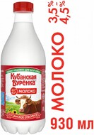 Молоко Кубанская буренка отборное пастеризованное 3.7% 930мл