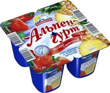 | Название | Продукт йогуртный Экстра сливочный 7,5% клубника-ананас, Альпенгурт, 100 гр, ПЭТ |