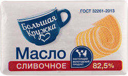 | Название | Масло сливочное Большая Кружка традиционное 82,5% 180г БЗМЖ |