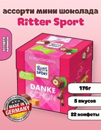 В этой карточке мы собрали ассорти мини шоколада Ritter Sport (Риттер спорт). Шоколад Риттер спорт набор – это шоколад в коробке из Германии со множеством начинок. Шоко боксы Риттер спорт представлены в четырех вариантах. Начинки шоколадок указаны на второй фотографии каждого товара. В наличии коробка шоколада риттер спорт с йогуртовыми начинками (ассорти начинок: классический йогурт, клубничный йогурт (клубника) и черничный йогурт (черника)). Также есть шоколад с цельными орехами, шоколад с карамелью двойной, шоколад с начинкой из хрустящего шоколада, риттер спорт с орехами дроблеными. Шоколад ритер спорт станет прекрасным сладким подарком для детей. Шоколад спасибо идеально подойдет в качестве оригинального сладкого презента, который точно удивит ваших друзей и близких, а еще скажет «спасибо» за вас. Риттер спорт молочный шоколад подойдет, как перекус для детей в школу. Риттер спорт темный – сладость, перед которой невозможно устоять! Приобретите набор вкусняшек, чтобы распробовать все конфеты. Европейские сладости можно преподнести в подарок маме, жене, сестре, дочери, как сюрприз мужу, сыну, брату или как символический подарок коллегам на работе, родственникам или друзьям. Из импортных сладостей также можно собрать сладкий бокс на любой вкус! А для детского праздника коробка немецких шоколадок точно не будет лишней!