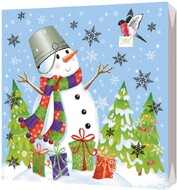 Салфетки бумажные трёхслойные сервировочные 33х33 20 штук Bulgaree Green Снеговик-затейник, пластиковый пакет