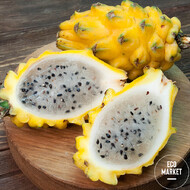 Питахайя – ароматный вкусный, сладкий фрукт с небольшими выростами желтого, красного или пурпурного цвета, прибывший к нам прямиком из Мьянмы. Мякоть белая у этого сорта питахайи белая, наполненная маленькими черными семенами. Яркие солнечные плоды этого кустистого древовидного кактуса активно используются в кулинарии для производства освежающих напитков, шербетов, йогуртов, джемов, соусов, желе, конфет, мороженного и даже молочных продуктов. Сами кактусы, на которых произрастает питахайя, имеют форму вьющихся лиан. Родиной этого экзотического пришельца считается Центральная и Южная Америка. Впрочем, этими географическими объектами драконий фрукт не ограничился, и на сегодняшний день его можно встретить в Таиланде, Вьетнаме, Филиппинах и в других тропических странах мира. Чтобы его попробовать, вам не обязательно брать билеты на самолет и куда-то лететь: просто зайдите на сайт ecomarket.ru и сделайте заказ, а наши курьеры привезут вам доставку прямо к порогу дома.